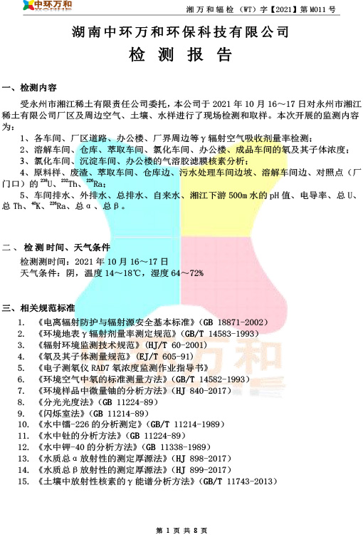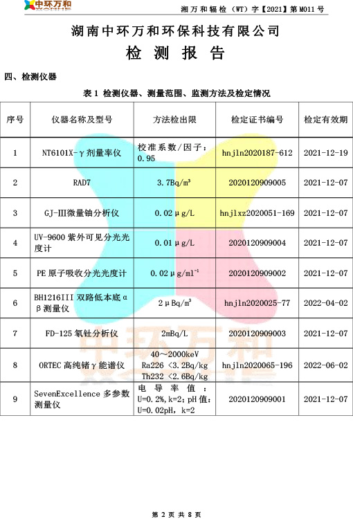 2021年度輻射信息公示-檢測報告
